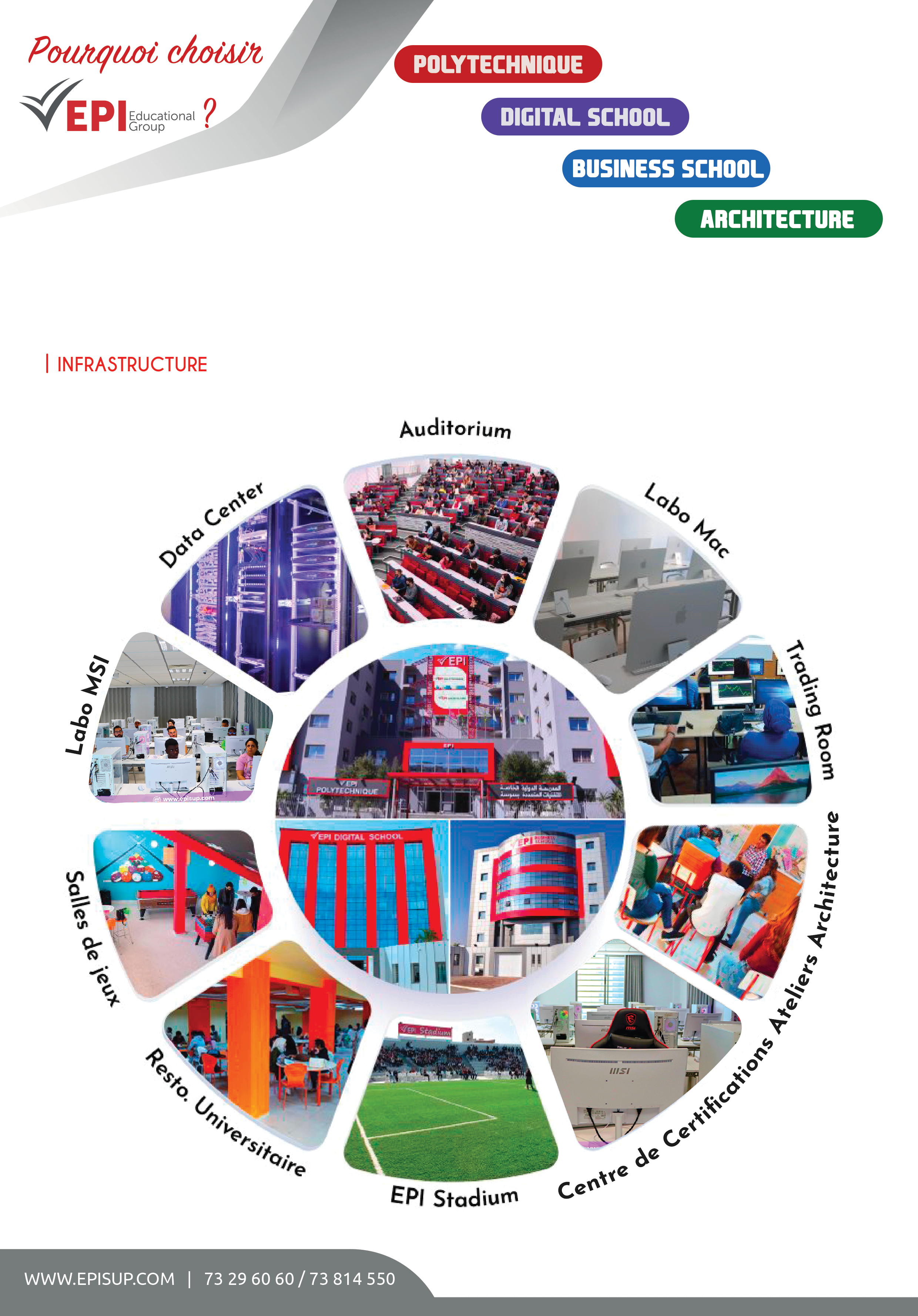 Vous désirez poursuivre vos études dans l’une de nos 4 écoles : EPI Digital School, EPI Polytechnique, EPI Business School ou EPI Architecture, votre choix est sûrement justifié par la notoriété grandissante qu’a pu acquérir le Groupe EPI pendant plus d’une décennie d'excellence.